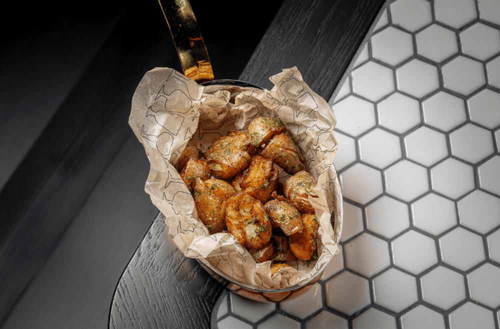 Молодой мини картофель, чеснок, сливочное масло